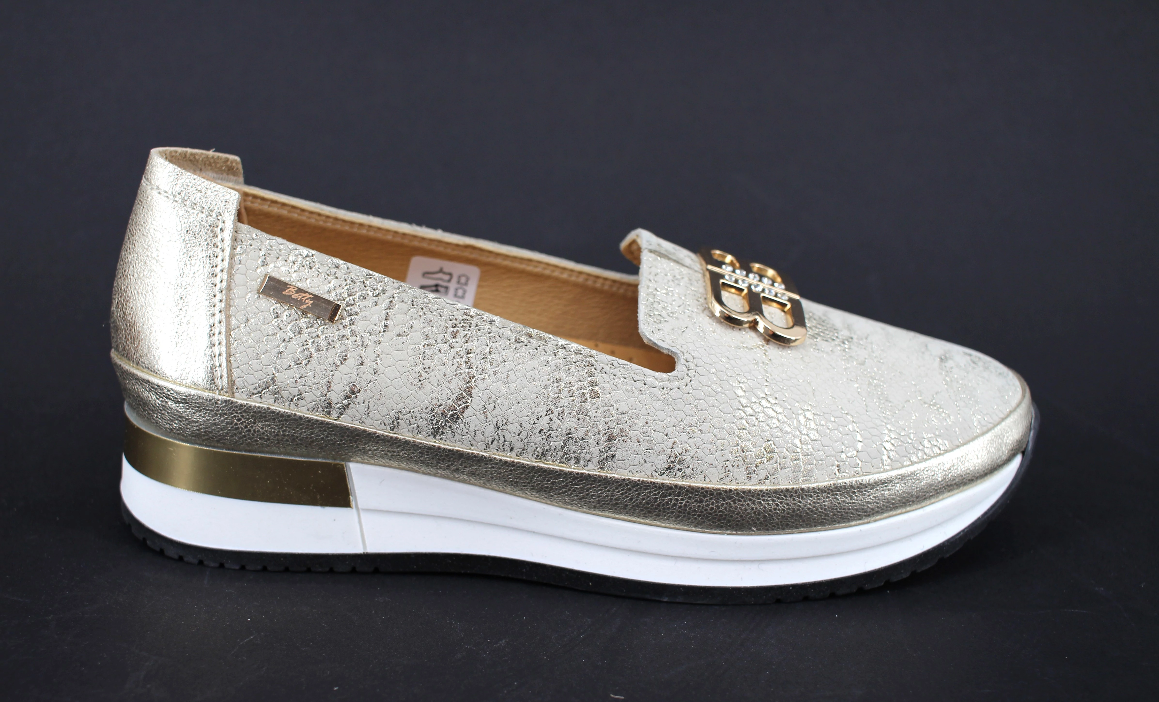 Betty női vastag talpú mokaszin, varott talpon, varott felsőrésszel készült modell Kényelmi ergonómiailag kialakított talpbetéttel.
