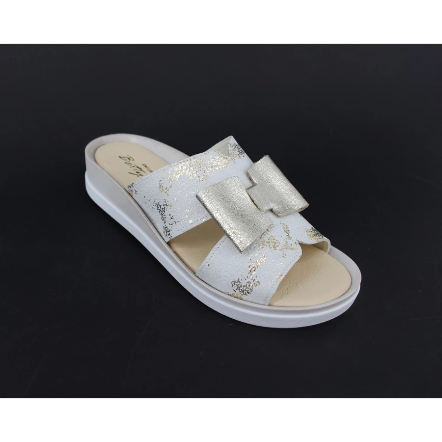 Betty női papucs, fehér ezüst színben, párnázott talpbetéttel.